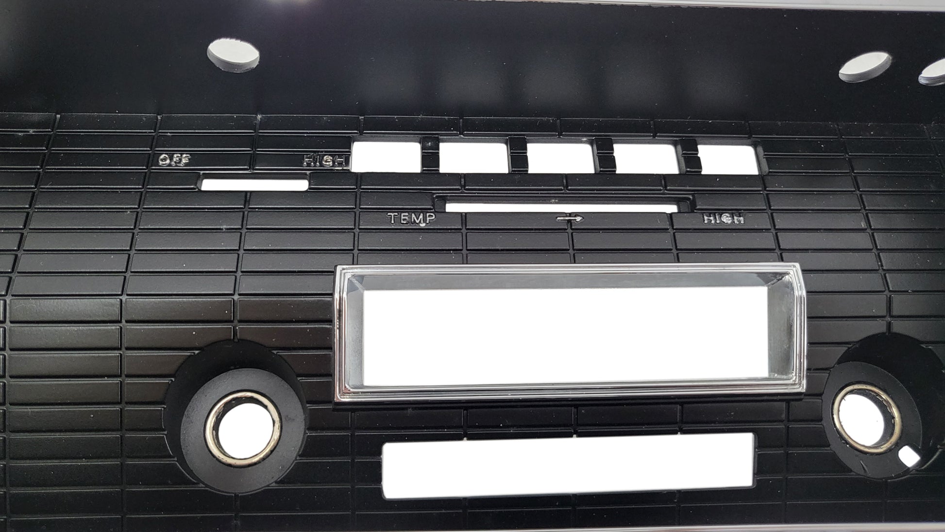New reproduction gauge bezel for 1966-67 Dodge Coronet vehicles with A/C. Replacing old dash components can be a difficult and expensive task. Our reproduction bezels are made using original factory-style reproduction; by using injection mold tooling, made by plastic and chrome, our bezels are made to look just like original with all correct grain and chrome accents.