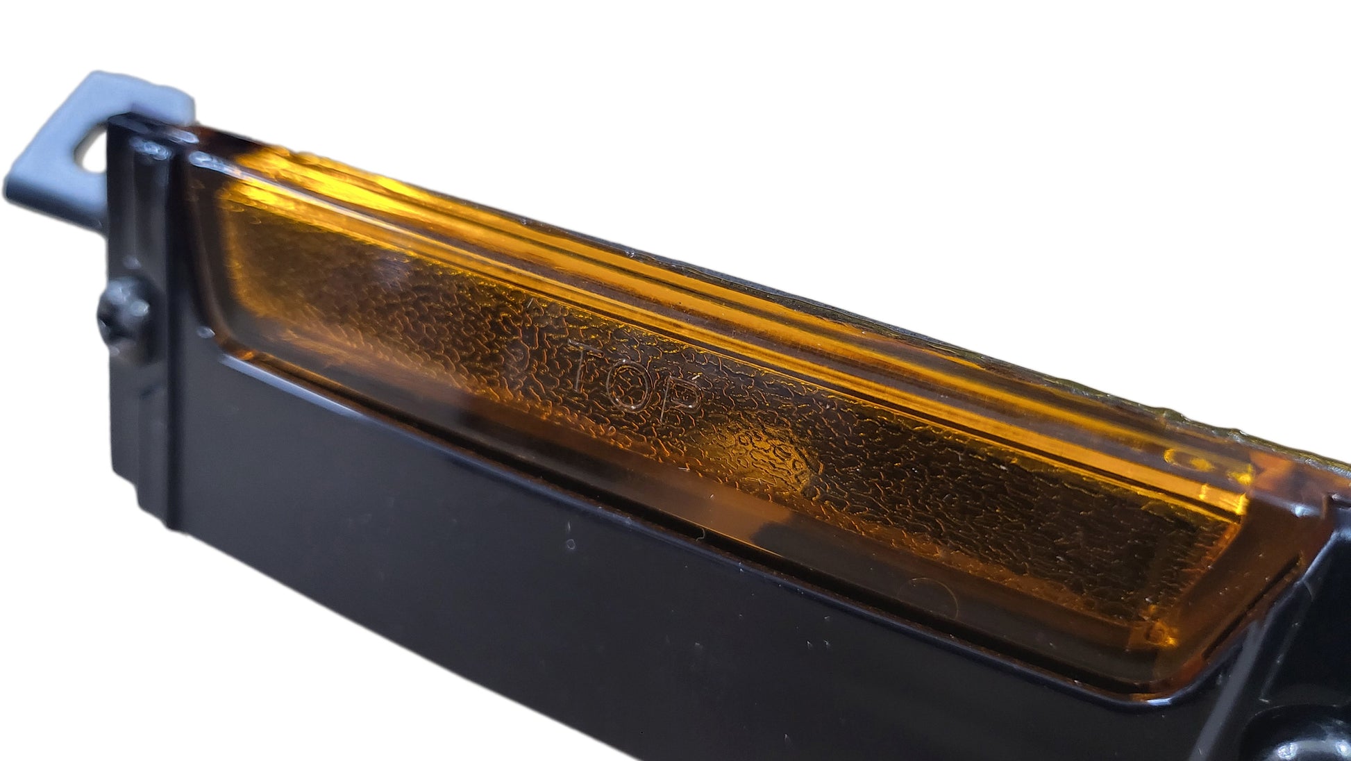 New reproduction hood mounted turn signal lens for 1967-68 Ford Mustangs. These reproduction hood mounted turn signals come ready to install with the lens pre-attached to the mounting bracket. The lens bracket comes in all black for a sleek look and the amber lens comes with correct "textured" design. Mounts underneath the hood.