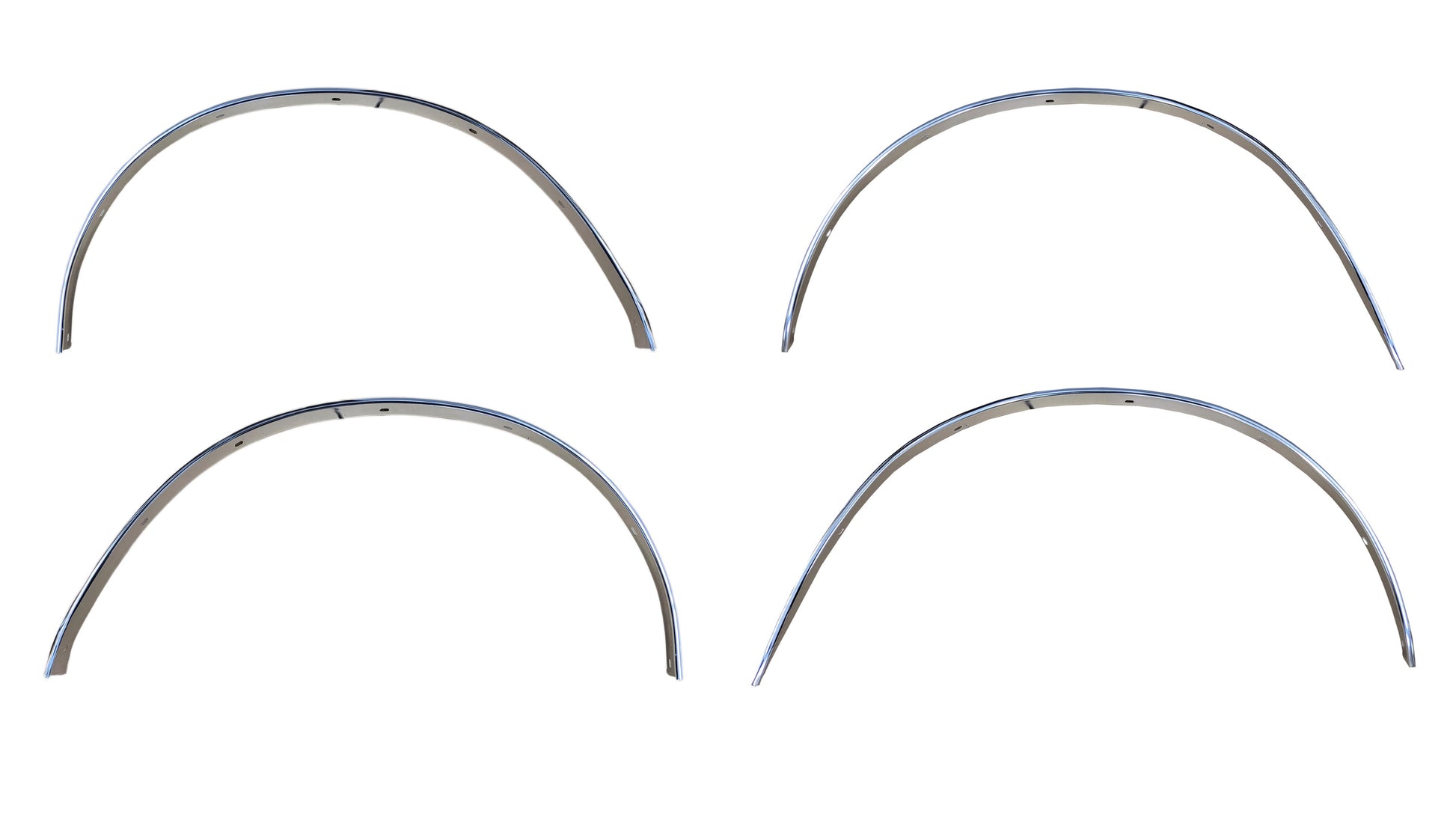 New reproduction front and rear driver and passenger side wheel opening moldings for 1965-66 Ford Mustangs. Made like original using roll-formed aluminum and a bright polished finish like original to fit onto the fenders above the wheel. Made to original specifications for an easy and seamless installation.