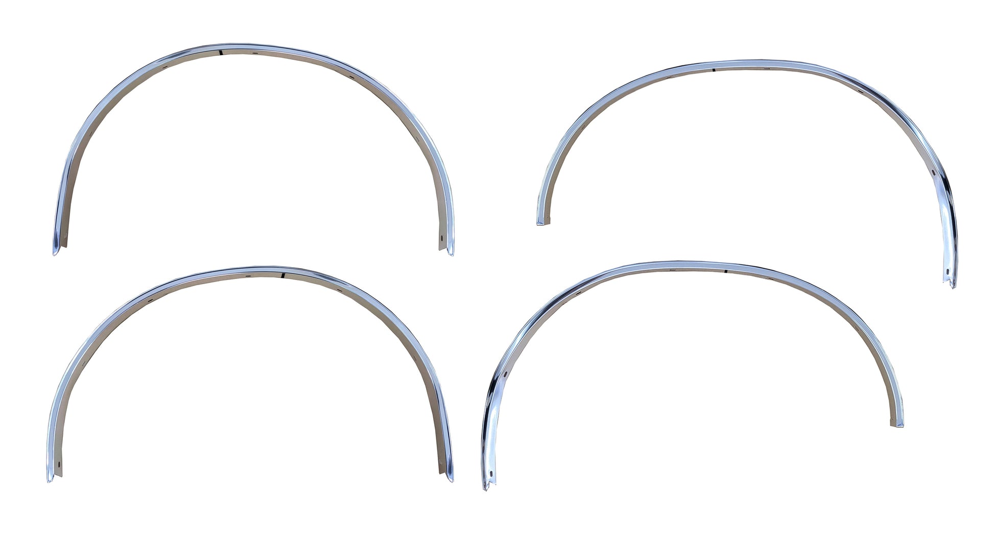 New reproduction front and rear driver and passenger wheel opening molding kit for 1971-73 Ford Mustangs. Made like original using roll-formed aluminum and a bright polished finish like original to fit onto the front and rear passenger and driver side fenders above the wheel. Made to original specifications for an easy and seamless installation.